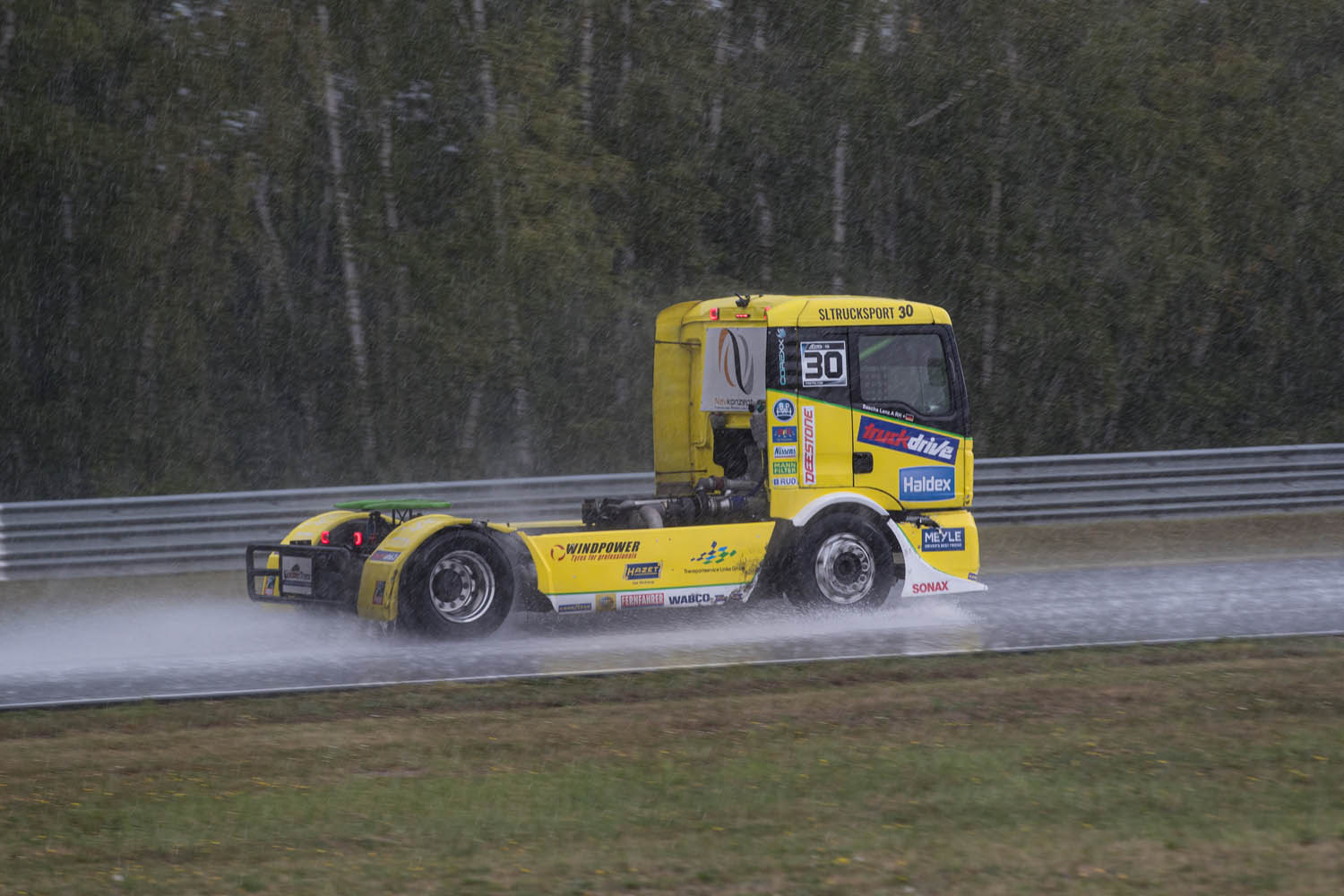 Race 3 was about to get underway at 14:10 CET on Sunday and although the race was briefly started under yellow flag conditions the weather conditions deteriorated and a decision was taken to red flag the race on lap three after several trucks struggled for grip and went through the gravel at Turn 3.